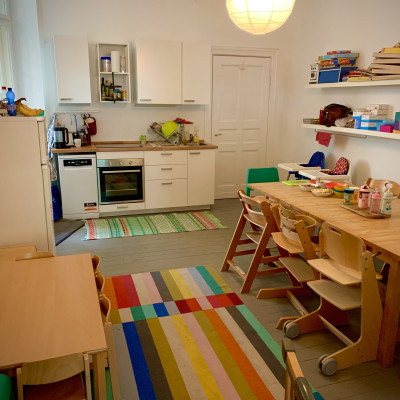 Den Kindern stehen ein großes Spielzimmer, ein Ess- und Aktivitätenraum in dem wir Essen, Basteln, Malen und spielen und ein Schlafraum zur Verfügung.
